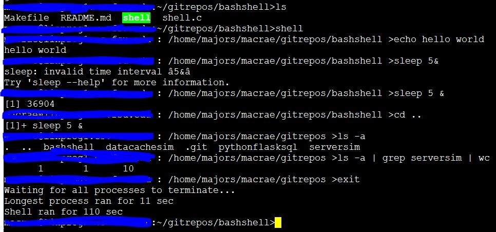 The result of my first group coding project and easily my biggest project to date. Implements I/O redirection, piping, and a very simplified version of